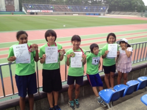 葉山キッズT&Fからは4年生が響(800m)、夢人(100m)、ふう(100m)。6年生が凌誠(3種競技)、ジャミン(走幅跳)、葉月(走高跳)、瑠美音(走高跳)、みう(80mハードル)が参加して、精一杯頑張りました。